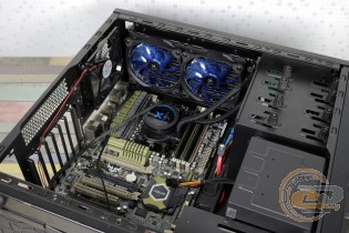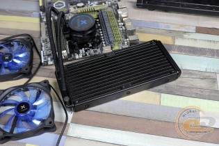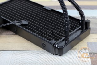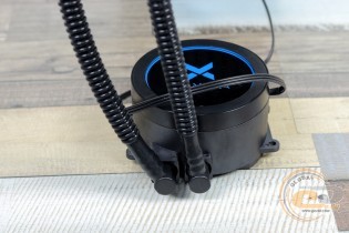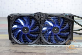 Помпа, що працює з частотою 2300 об/хв, виявилася майже безшумною, тому загальний фон у більшості випадків залежатиме саме від пропелерів. У згаданому помірному режимі (1200 об/хв) новинка працює майже безшумно, а при збільшенні частоти практично до номінального значення (1540 об/хв) акустичний комфорт не порушується. Це дозволяє назвати дану водянку однією з найтихіших серед тих, що потрапляли до нас на тестування.