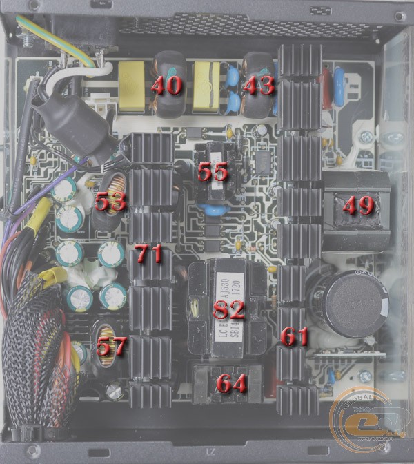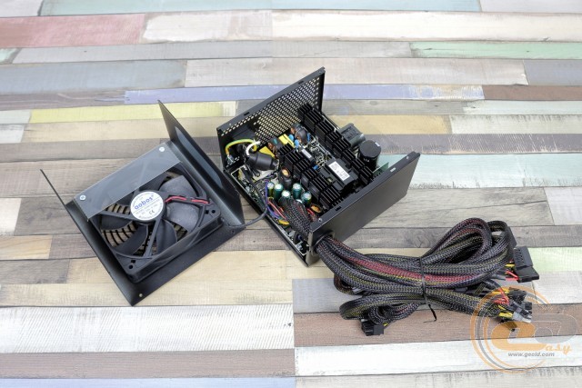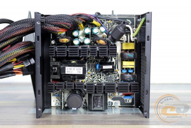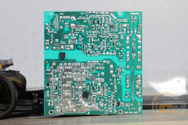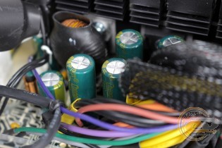 Однак не будемо забувати, що перед нами бюджетник зі звичною для даної цінової категорії економією. Так, використовувані конденсатори мають далеко не найкращу репутацію, хоча 3-річна гарантія від виробника все ж дозволяє деякий час не переживати про вихід пристрою з ладу. Що стосується роботи вентилятора, то він не потривожить вас шумом. А ось при певному навантаженні (до 300 Вт) можливий підвищений нагрів компонентів через низькі частоти його обертання. Справедливості заради відзначимо, що при навантаженні понад 350 Вт вертушка розганяється до номінальних 1450 об/хв, і в такому режимі нагрівання внутрішніх елементів далеке від критичного.