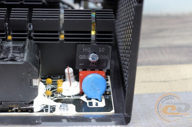 Випрямлення напруги здійснює діодна збірка GBU1006, розрахована на струм силою до 10 А. Оскільки даний елемент прикручений до головного радіатора, то за його нагрівання і збереження ми не переживаємо.