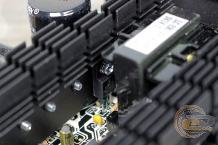 На другому радіаторі зафіксований термодатчик, показники якого і визначають частоту обертання вертушки. Сам гребінець відводить тепло від діодів Шотткі, які тут представлені кількістю 4 штуки: пара для лінії +12 В і по одному для більш дрібних номіналів.
