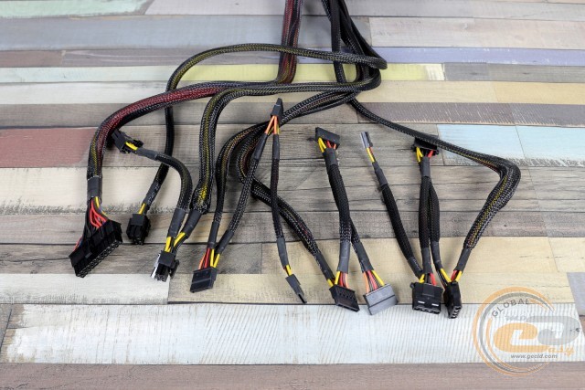 Основні конектори представлені 20+4-контактним ATX і 4 + 4-контактним ATX12V. Майже будь-яку відеокарту можна підключити за допомогою двох 6+2-контактних роз'ємів PCIe, а для живлення периферії передбачені шість SATA (на двох окремих дротах) і три PATA з FDD.