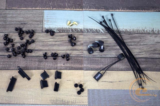 Щоб роз'єми не стали місцями скупчення пилу, в комплекті є низка заглушок. Безумовно, їх практичність залежатиме від ступеню використання самих інтерфейсів передньої панелі. Однак вже радує сам факт, що виробник пропонує вирішення проблеми з пилом.