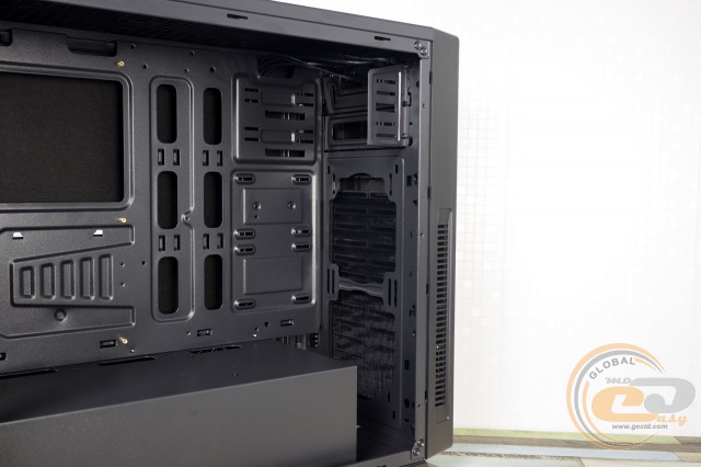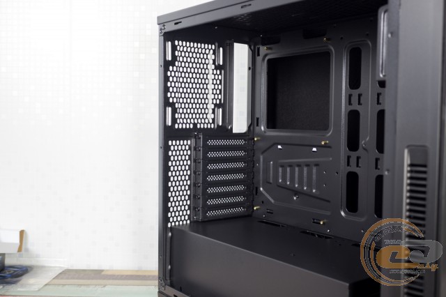Дивлячись на внутрішнє компонування Vinga Black Widow, асоціації зі шведом вже майже не виникають. Зокрема, бічної стійки для накопичувачів тут також немає, але з'явився тунель внизу корпуса.