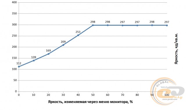 Діапазон яскравості склав від 112 до 298 кд/м2, що, знову ж таки, перевищує заявлений максимальний показник у 240 кд/м2. Мінімальне значення яскравості може бути дещо надмірним для перегляду в темний час доби, а ось верхня межа забезпечить комфортну роботу в умовах яскравого сонячного дня.