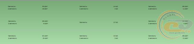 Максимальне відхилення яскравості щодо центральної ділянки не перевищує 18 кд/м2, що можна вважати хорошим результатом.
