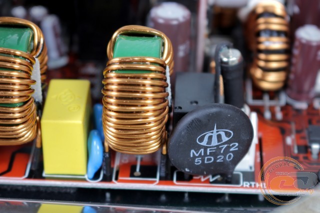 Інші елементи електромагнітного фільтра розпаяні вже на головній PCB. У їх числі: варистор, пара дроселів, два Y- і ще один X-конденсатор, а також запобіжник.