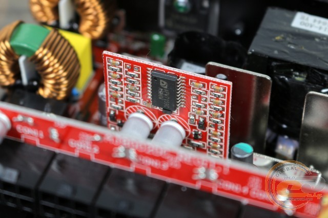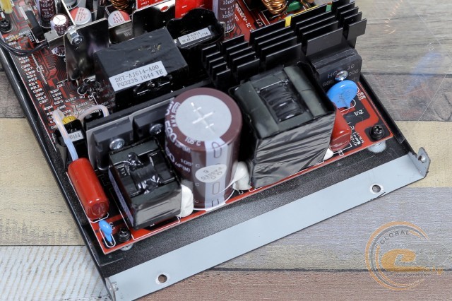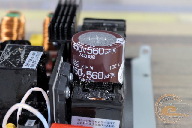 Поруч видно дросель модуля активної корекції коефіцієнта потужності (APFC), поміщений у пластиковий корпус.