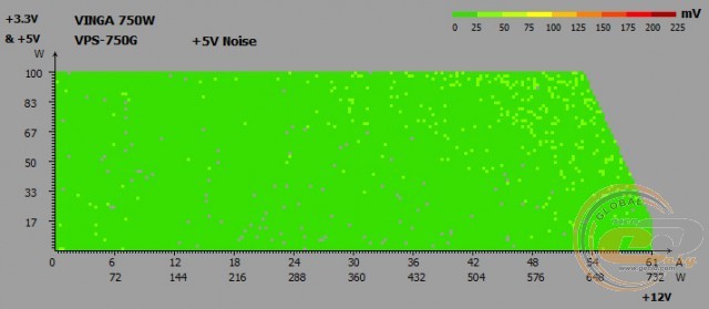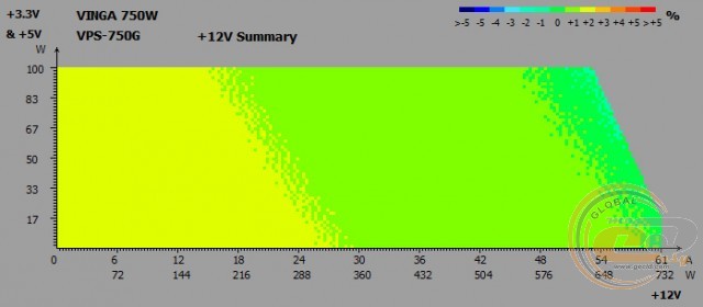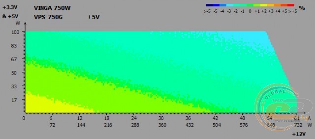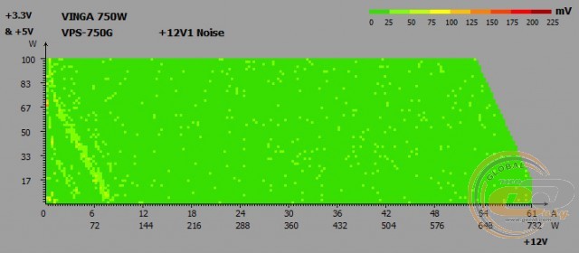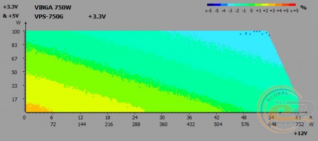 Тепер про електротехнічні показники. Єдина 12-вольтна лінія має потужність 732 Вт (61 А), що становить майже 98% від номіналу. Для більш дрібних каналів +3,3 і +5 В відведено всього 100 Вт - цього повинно вистачити.
