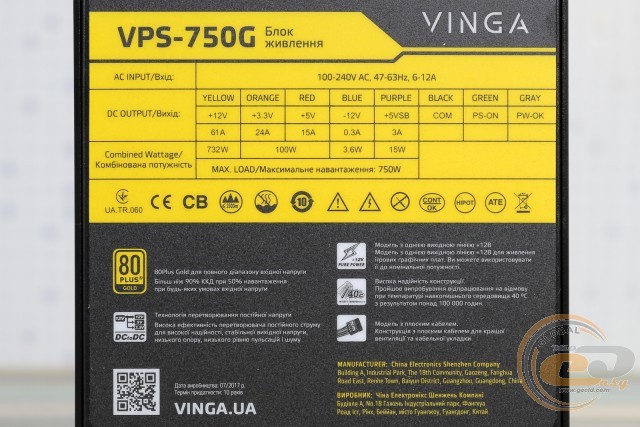 Огляд і тестування блока живлення Vinga VPS-750G: джерело небаченої щедрості