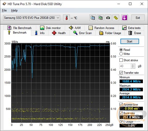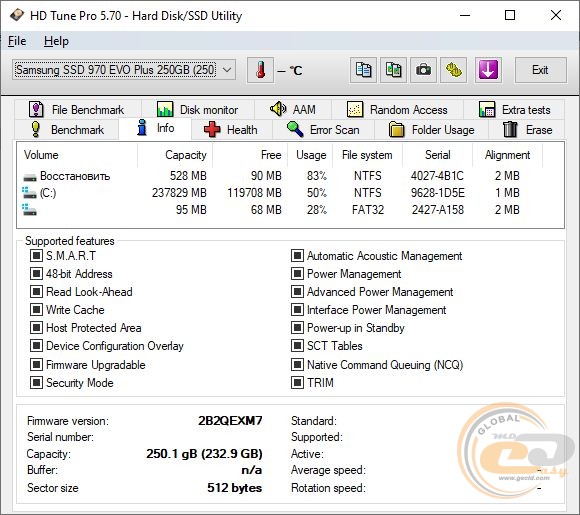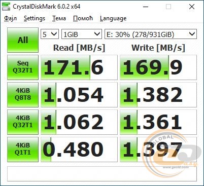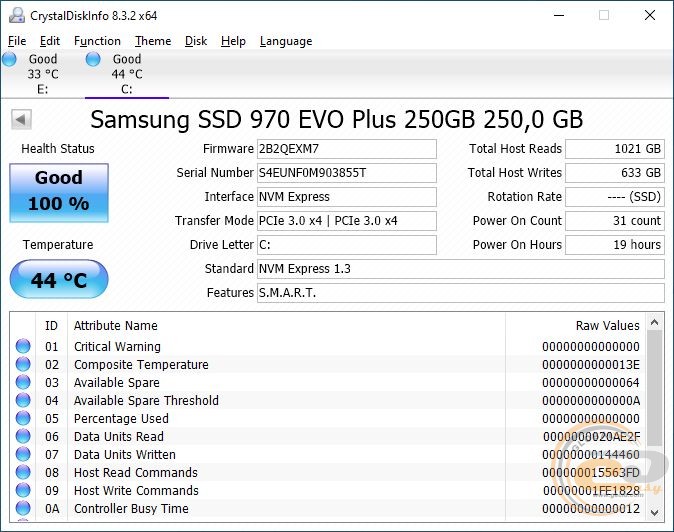 Дискова підсистема представлена гідною зв'язкою SSD і HDD. Почнемо з першого. Для встановлення ОС, ігор та часто використовуваного ПЗ підійде твердотільний накопичувач Samsung 970 EVO Plus об'ємом 250 ГБ. Це дуже швидке рішення з фірмовою пам'яттю типу V-NAND, контролером Phoenix і інтерфейсом PCIe Gen 3.0 x4 із підтримкою NVMe 1.3. Максимальна швидкість послідовного зчитування/запису заявлена на рівні 3500/2300 МБ/с, але в реальності ми отримали більш високі показники - 3554/2379 МБ/с. Цього більш ніж достатньо для повсякденної експлуатації, швидкого старту системи і відсутності проблем з довгим завантаженням ігор.