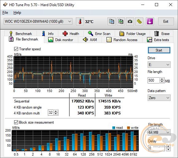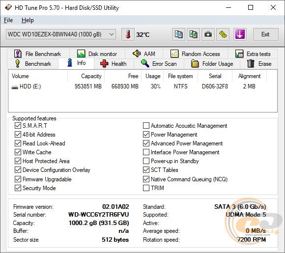 Для зберігання файлів встановлений жорсткий диск WD Blue WD10EZEX об'ємом 1 ТБ зі швидкістю обертання шпинделя 7200 об/хв і 64 Мб кеш-пам'яті. Максимальна швидкість послідовного читання даних досягає 172 МБ/с, а запису - 170 МБ/с.