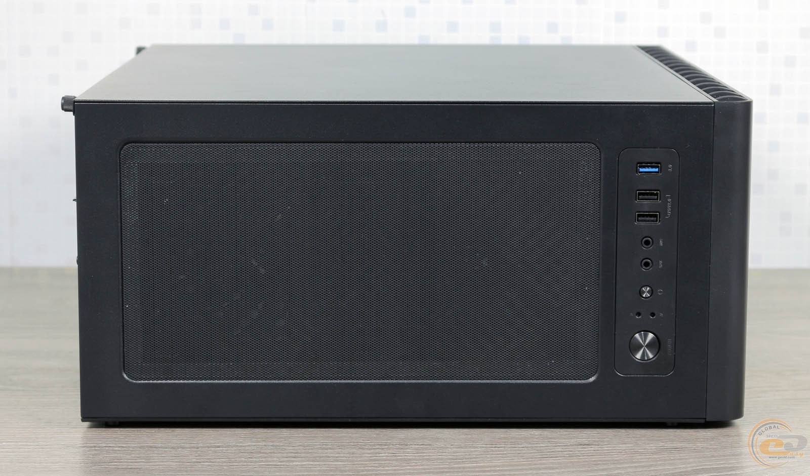 Зверху корпуса знаходиться панель з кнопками ввімкнення і перезавантаження, двома індикаторами, парою аудіорознімів і трьома портами USB: двома USB 2.0 і одним USB 3.1 Gen 1.
