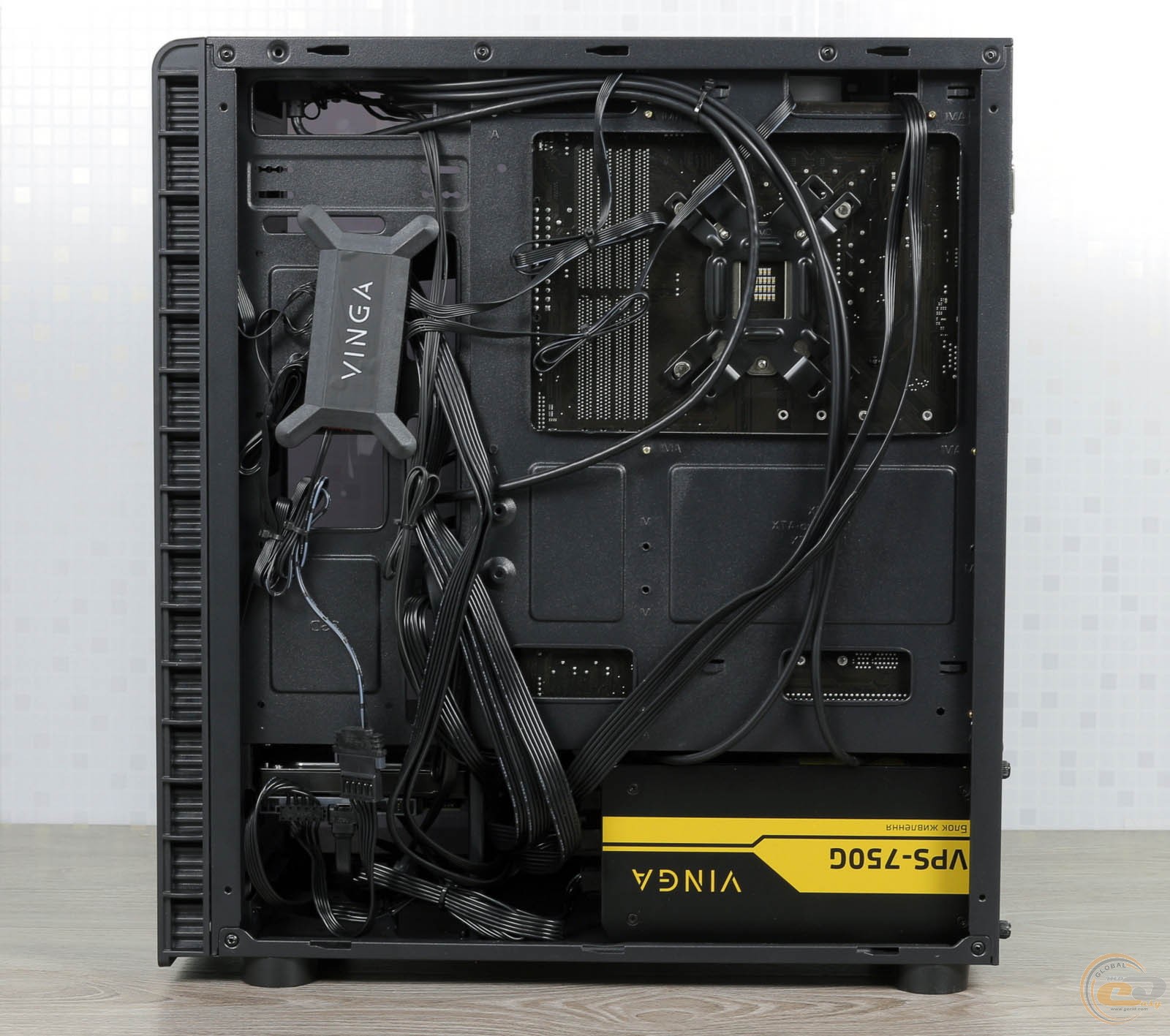 Роль блока живлення виконує модель Vinga VPS-750G із піковою потужністю потужність 750 Вт. Він може похвалитися неординарним дизайном, високою ефективністю (80PLUS Gold) модульною організацією кабелів, 120-мм вентилятором із гідродинамічним підшипником, хорошим запасом з потужності і якісною елементною базою з японськими конденсаторами.