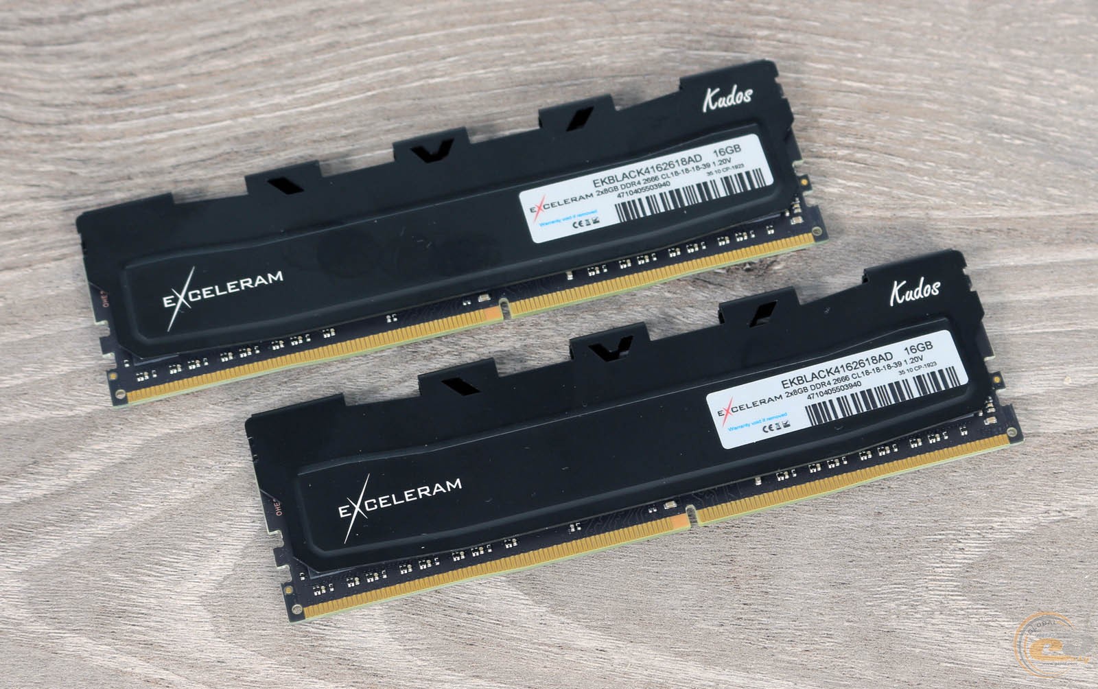 В якості оперативної пам'яті встановлений комплект eXceleram Black Kudos DDR4-2666 (EKBLACK4162618AD). Він складається з двох планок по 8 ГБ. Модулі відрізняються приємним дизайном і низькопрофільними радіаторами. Загальний обсяг у 16 ГБ зараз можна сміливо назвати золотим стандартом для ігрових рішень середнього рівня. А за частотою гнатися все одно немає сенсу, адже 2666 МГц - це максимальне значення для цієї зв'язки процесора і материнської плати.