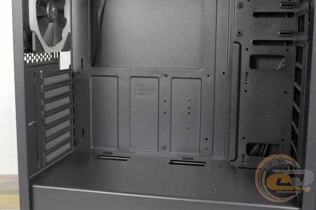 Материнська плата формату ATX, microATX або Mini-ITX встановлюється на стандартні 6-мм стійки. Для зручності всі отвори промарковані.