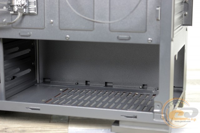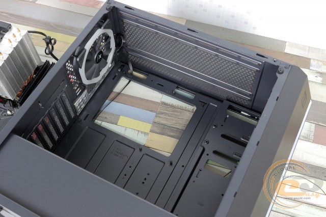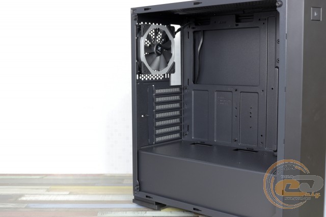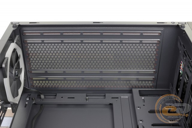 Під стелею знайдеться місце для двох 120-мм або 140-мм «карлсонів». Відстань від кромки материнської плати до верхньої панелі становить усього 26 мм, тому СВО не поміститься.