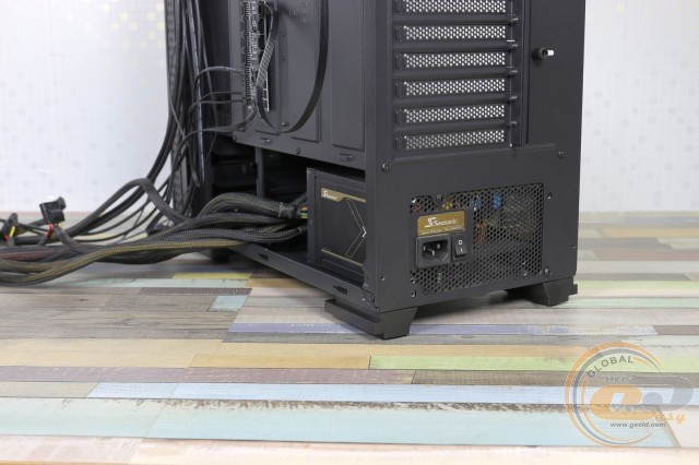 На жаль, посадкове місце під блок живлення не обладнане антивібраційними прокладками. Кріплення здійснюється комплектними гвинтами. Згідно з нашими замірами, максимальна довжина БЖ становить 210 мм. При цьому залишається близько 40 мм для укладання дротів.