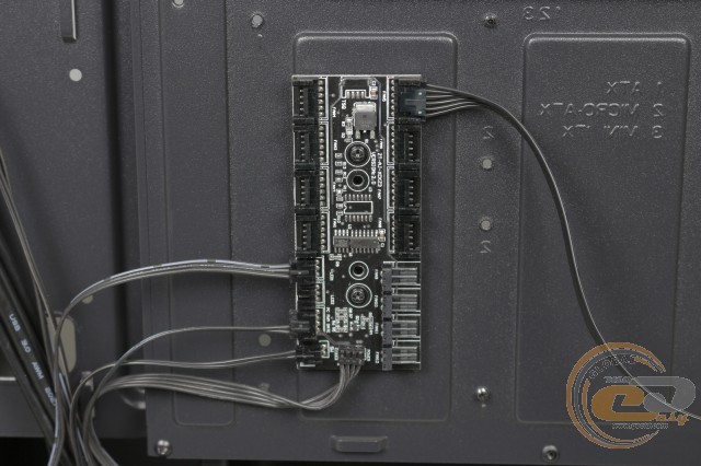 Корпус має в своєму арсеналі штатну керуючу плату ZT-AJ-XCK23, до якої підведений комплектний нагнітач повітря. Сюди ж можна підключити ще сім 4-контактних рішень, ще одну світлодіодну стрічку і чотири 3-контактних пропелери.