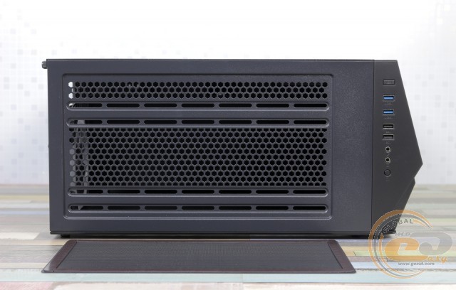 Передня частина легко демонтується, оскільки кріпиться на звичних засувках. Після її демонтажу відкривається вид на уніфіковане шасі: деякі решітки можна було б виламати для встановлення зовнішніх пристроїв, якби передня панель передбачала таку можливість. У даному ж разі вони використовуються для кріплення радіатора СВО або вентиляторів. Але ефективність останніх обмежена невеликим припливом прохолодного повітря, зважаючи на наявність вентиляційних отворів тільки на правому торці панелі. Вставка з сітки на зверхньому боці явно не завадила б.