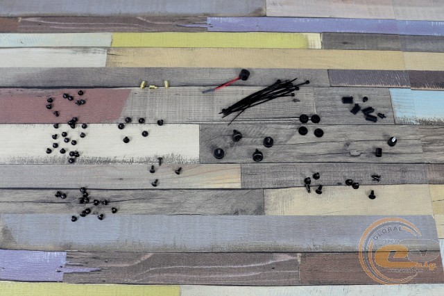 Комплектні гвинти і стійки супроводжуються системним динаміком, жменькою стяжок для дротів і заглушками для інтерфейсів.