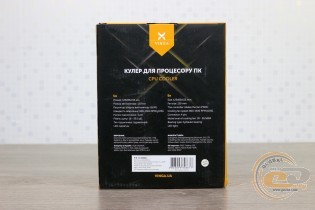 Система охолодження постачається в картонній коробці середніх розмірів, оформленій в чорно-жовтій гамі кольору. На її зверхньому боці приведено фото штатного вентилятора з підсвічуванням і ключові особливості кулера. Зі зворотного боку є детальні технічні характеристики.