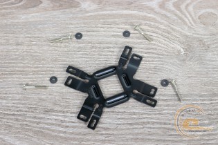 На материнських платах під масові процесори Intel використовується комплектна універсальна підсилювальна пластина з липкою двосторонньою прокладкою. Перевертаємо її на себе боком із написом Intel і встановлюємо шпильки в діагональні отвори. Не забуваємо про діелектричні шайби.